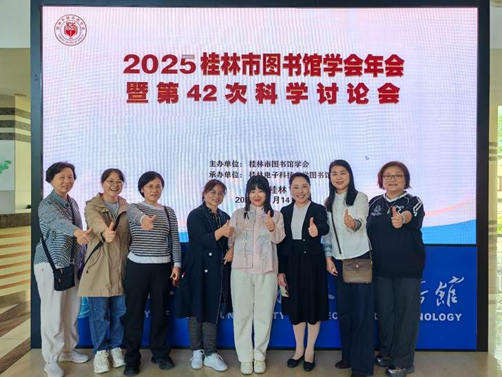 2025年11月14日,我校图书馆组队参加了在桂林电子科技大学(花江校区)举办的桂林市图书馆学会年会暨第42次科学讨论会。我校图书馆馆长江云清带领20多位馆员参会。