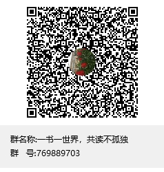 感兴趣的同学,请QQ扫描下方的二维码加入“一书一世界,共读不孤独交流群”(QQ:769889703),了解活动详情和报名。