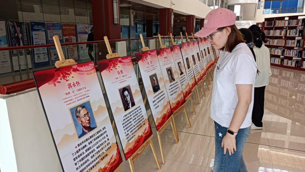 活动主会场设在桂林理工大学图书馆大厅,内容丰富多彩,亮点纷呈。“两弹一星”功勋科学家海报展聚焦王希季等科学家的光辉历程,生动展现了中国第一颗返回式卫星成功发射等重大科研成就,并穿插科学家的名言金句,既彰显了他们矢志不渝的崇高精神,又凸显了胸怀天下的伟大抱负。国内外著名科学家漫画展则以爱因斯坦、屠呦呦等科学巨匠为蓝本,用漫画形式幽默诙谐地呈现了青蒿素发现等突破性贡献,同时融入他们的人生格言,着重强调求实与协作精神,为青年学子树立了可亲可敬、可学可做的榜样。